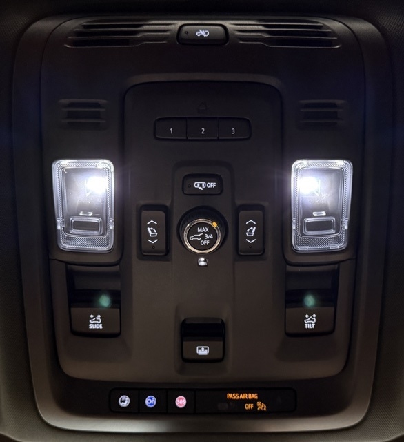 • Lighting, interior with dome light, driver- and passenger-side door switch with delayed entry feature, cargo lights, door handle or Remote Keyless Entry-activated illuminated entry and map lights in front and second seat positions